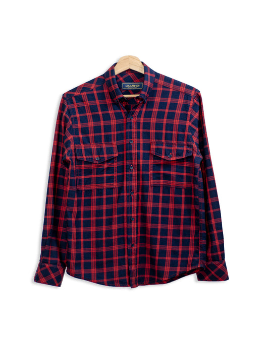 Camisa Hombre de cuadros bitono roja